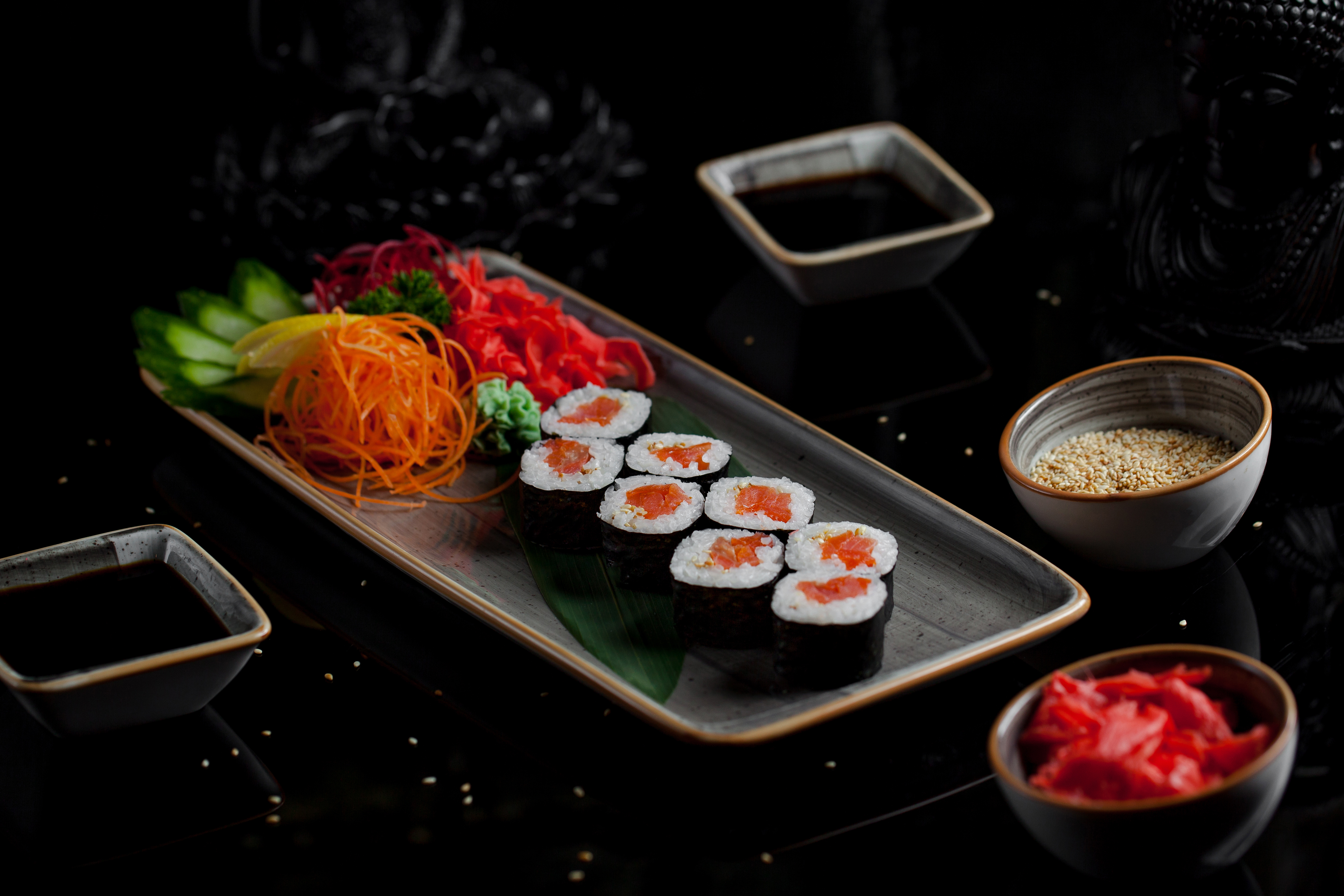 A fusion of delicate textures and flavors, this sushi roll showcases: